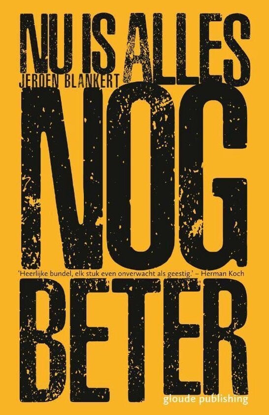 In Nu is alles nog beter bekijkt Jeroen Blankert op zijn eigenwijze eigen wijze onze samenleving. Hij maakt ons duidelijk hoe vastgesleten ons denkpatroon kan zijn en laat ons door zijn humor de boel enorm relativeren. Zijn vlotte korte stukjes vergroten de menselijke eigenaardigheden en verkleinen daarmee onze dagelijkse zorgen. In een bijzondere mix van humor, gevatheid en een zekere ernst weet Blankert ons te prikkelen om anders over dingen na te denken. Een genot om te lezen, zeker voor wie behoefte heeft aan de nodige relativering in de drukte van alledag. ‘Dit is een heerlijke bundel, elk stukje met een even onverwachte als geestige invalshoek.’ – Herman Koch ‘Een grinnik op iedere bladzijde. Jeroen Blankert vergroot de menselijke eigenaardigheden en verkleint daarm